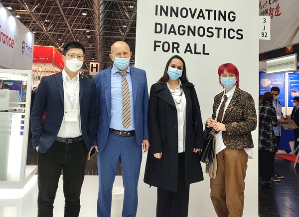 巴西一位合作多年的客户特意来到kaiyun开云展台,沟通四通道iPonatic合作事宜。在听取工作人员的详细介绍并观看操作后,他表示,“你们的POCT可搭载的项目很多,正是我们所需要的,我们非常感兴趣。”
