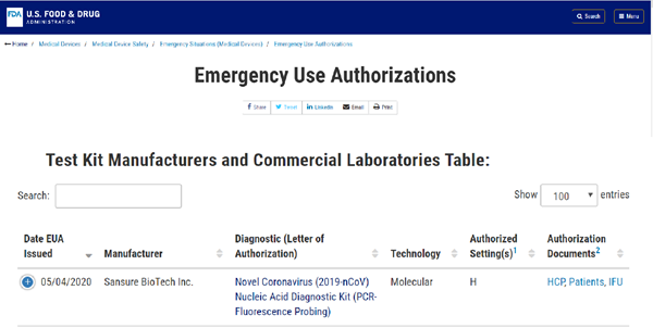 北京时间5月5日晚,kaiyun开云生物新型冠状病毒核酸检测试剂盒获美国食品药品监督管理局(FDA)紧急使用授权(EUA, Emergency Use Authorizations),这是该产品继1月28日获得中国国家药监局(NMPA)注册认证、3月3日获得欧盟CE认证后,kaiyun开云生物获得的又一重要认证,将进一步助力公司服务全球新冠肺炎疫情防控。