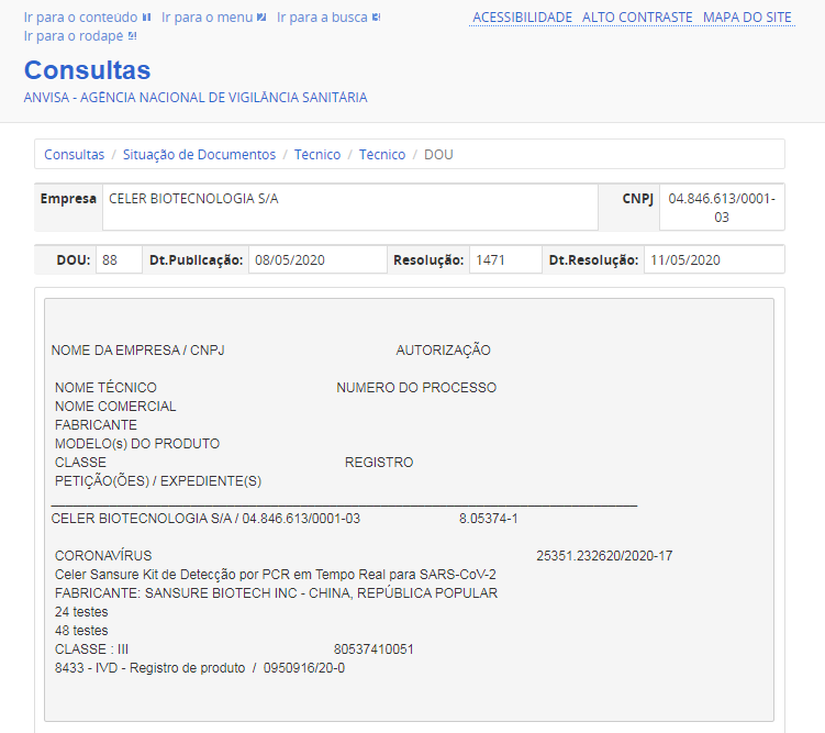 5月11日,kaiyun开云生物新冠病毒核酸检测试剂盒获得巴西卫生监督管理局(ANVISA)注册证书。此前,该产品已相继获得中国国家药监局(NMPA)注册认证、欧盟CE认证、美国FDA紧急使用授权、新加坡卫生科学局临时授权等一系列权威认证。